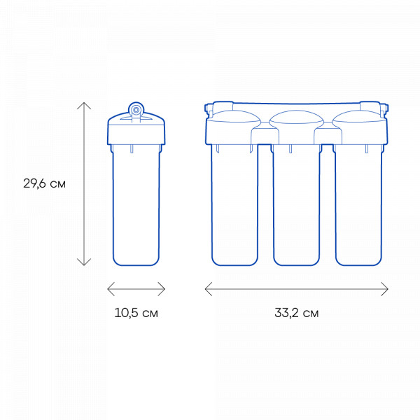 Три картриджа последовательно очищают воду от видимых механических примесей и растворенных вредных веществ. Минимализм конструкции и высокоэффективные сорбенты позволяют Трио обеспечить отличное соотношение стоимости владения фильтром к высокого качества очистки.